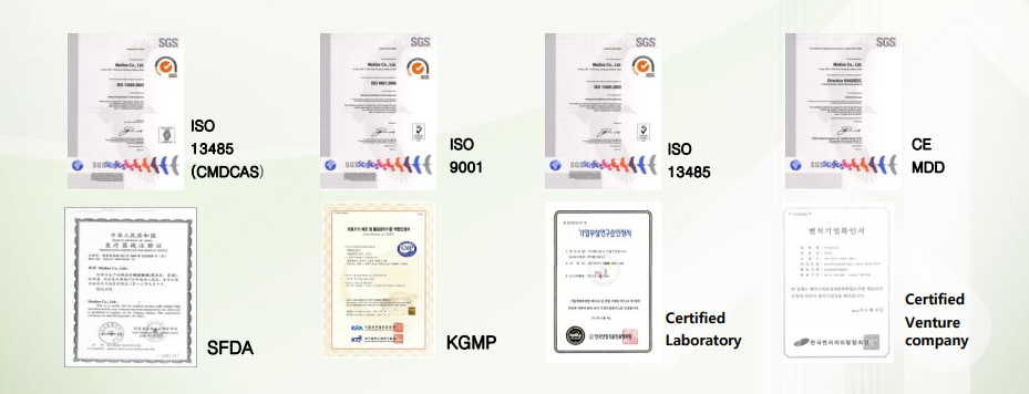 ♣ KGMP 認証 : KGMPとは(Korean Good Manufacturing Practice)の略語で、 優秀な薬品製造および品質基準とも言われます。KGMPはKFDAで審査して付与する品質認証書です。 認証機関であるKFDA(Korean Food and Drug Administration),は韓国食品医薬品安全庁に食品医薬品衛生管理及び点検、 医薬品の安定性及び有効性を検討する保健福祉部所属,の行政機関です。