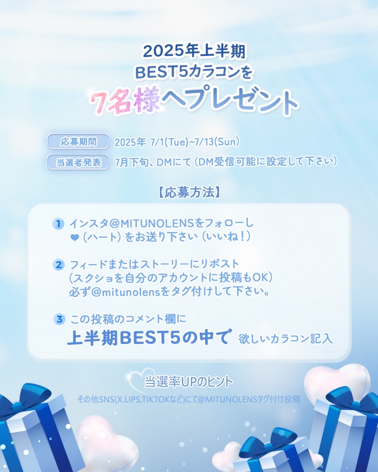 2025上半期人気BEST5カラコン プレゼントキャンペーン 抽選 7名様
